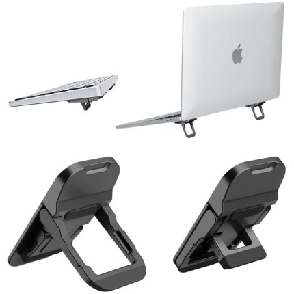 ZORBES® Portable Invisible Laptop Riser Stand, 2 Mini Self-Adhesive Alloy Metal Folding Desk Stand, Lightweight Laptop Desk Feet for MacBook, Lenovo, HP, Dell, Laptops & Tablets, 2pc (Black)
