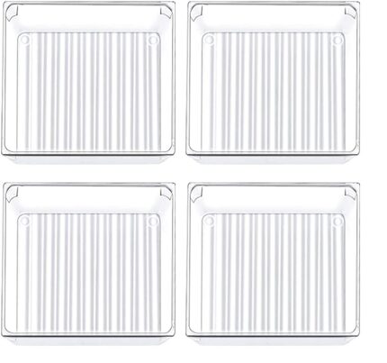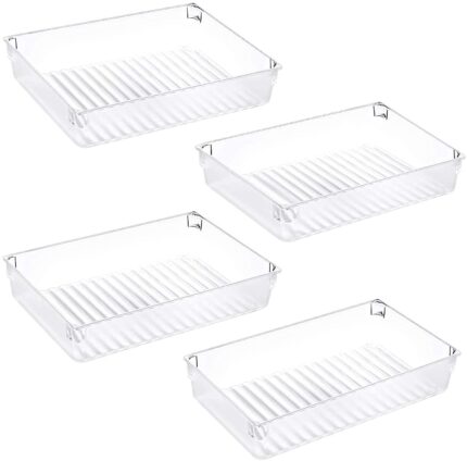 Zollyss 4 Pack Desk Drawer Organizer Tray Rectangle Plastic Bathroom Organizers Kitchen Utensils Silverware Gadgets Trays Dividers Bins For Dresser Cosmetic Makeup Tools office Cabinets, Square