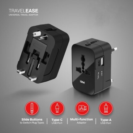 Honeywell New Launch Universal Travel Adapter 12W, 3-in-1 Fast Charging, Universal Socket, TypeC, USBA, Worldwide Wall Charger for EU,US,UK & CN/AUS, Devices, 3Yr Manufacturer Warranty