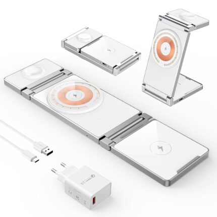 Price: (as of – Details) 3 in 1 Foldable Zinc Alloy Hohosb Magnetic Charging Station [Compatible with Magsafe Charger] High-end