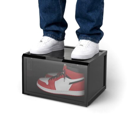 SHOEGR Safe | Shoe Storage Organizer | Sneaker Storage Box | Black Heavy-Duty Shoes Boxes | Side Drop Crates with Magnetic Closure | Large Storage Box | Fits upto Size UK14 (Black, Pack of 1)