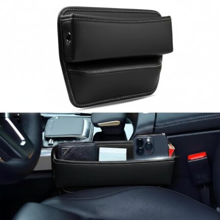 SIAGO Car Seat Gap Filler Organizer | Premium PU Leather Storage Box for Phone | Car Accessories for Keys, Cards & Coins | Universal Fit for Cars, SUVs & Trucks (Black) (SIA133)