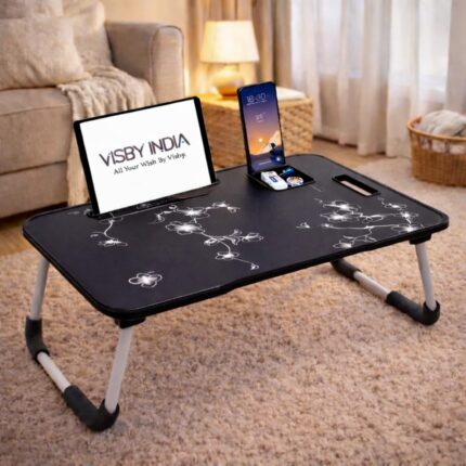 SPHENI Smart Multipurpose Foldable Laptop Table with Cup Holder, Study Table, Bed Table, Breakfast Table, Foldable and Portable/Ergonomic & Rounded Edges/Non-Slip Legs (AUS FLOWER NEW)