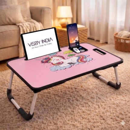 SPHENI Wood Smart Multipurpose Foldable Laptop Table with Cup Holder, Study Table, Bed Table, Breakfast Table, Foldable and Portable/Ergonomic & Rounded Edges/Non-Slip Legs (UNICORN*NEW)