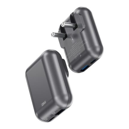 GM 33W Spyder GaN Charger Grey | Compact Dual-Port Fast Charger with Foldable Indian Pin | GaN Technology | Protection Features | Type-C PD & USB-A Output | Compatible with Smartphones and Tablets