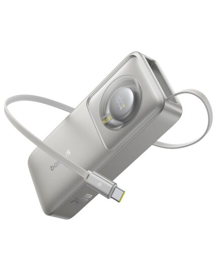 Baseus Free2Pull 10000mAh 30W Portable Power Bank – Built-in Retractable USB-C Cable, Digital Display, PD Fast Charging – Lunar Gray