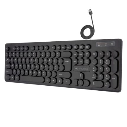 ZEBRONICS K24 Wired USB Keyboard, 104 Keys, Long Life 8 Million Keystrokes, Silent & Comfortable Use, Slim Design, Retractable Stand, 1.5 Meter Textured Cable, UV Coated keycaps