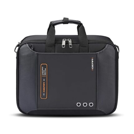 Gear Inspired Alive Moving 14L/16″ Faux Leather Water Resistant Laptop Briefcase/Office bag/Laptop Messenger for Men/Women (Black – Orange)