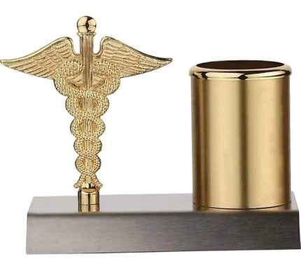 Pen Stand For Doctors With Caduceus Symbol, Gifts For A Medical Student, Office Accessories, Desk Organiser In Gold & Silver Color