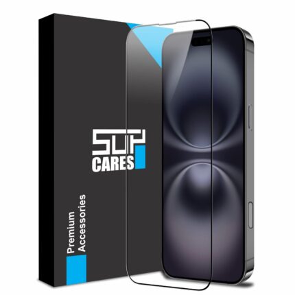 SupCares Tempered Glass for iPhone 15 and iPhone 16 (6.1 Inch) With Installation Kit | Military-Grade Gorilla Screen Protector | Edge to Edge Coverage | Black
