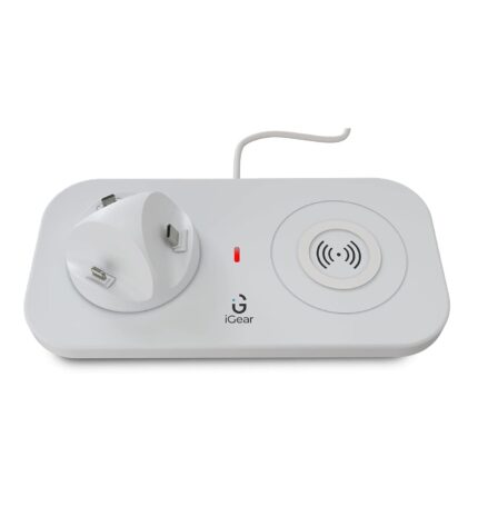 iGear DockMe 10W Fast charging with Docking and 15W Wireless Charger, Android, iOS and Type-C Charging pins,(White) – 1 Year Free Replacement Warranty