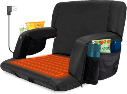 KRLZ Heated Stadium Seats for Bleachers with Back Support, Heated Stadium Chair for Outdoor Sport Events, 6 Reclining Positions, 3 Heat Mode, 4 Pockets (No Include USB Power Bank