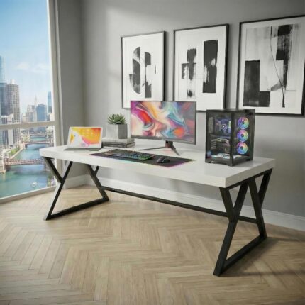 Klaxon Computer Table in Engineered Wood with Flat Surface, Multi-Usage Laptop Desk & Home Office, Desk Sturdy Gaming Table (150 cm – White)