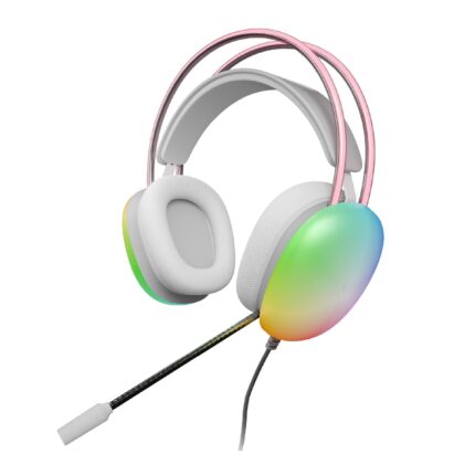 VERITY PC Gaming Wired Headset with Mic | Over-Ear Lightweight Headset with Powerful 40mm Drivers, RGB Lighting, Adjustable Headband, Soft Breathable Ear Cushions, 3.5mm AUX, White Rainbow