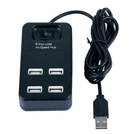 4 Port USB 2.0 HUB, High Speed Data Transfer with Control Switch and 1.2 m Long Cable for Windows, Mac OS and Linux, PC Desktop Laptop MacBook (P- 1601-Black)