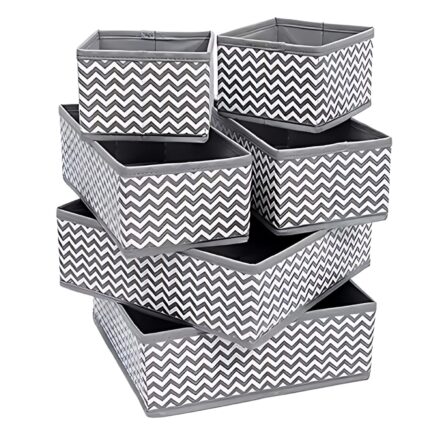 Zigzag Grey Printed Foldable Storage Boxes | Decorative Non-Woven Fabric Organizers | 2 Small, 2 Medium & 2 Large for Clothes, Toys & Home Décor – Set of 6