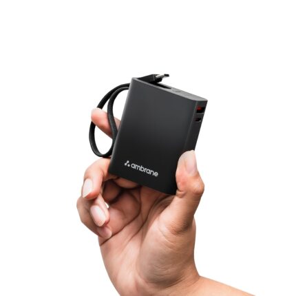 Ambrane 10000mAh Smallest Pocket Size Powerbank, Hanging InBuilt Type C Cable, 22.5W Fast Charging, Type C PD & USB Output for iPhone, Android Mobiles & Other Devices (MiniCharge 11, Black)