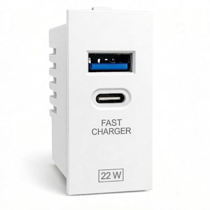 22W Fast Charging Wall Charger | Dual Port USB Type C Adapter Modular Socket | Power Socket with USB for Modular Switch Board & Wall Socket – White