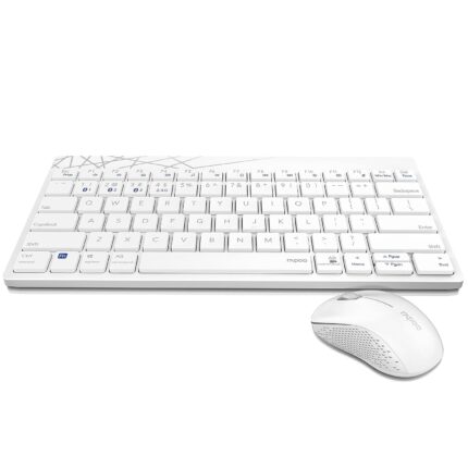 Rapoo 8000M Multi-Mode Keyboard & Mouse Bluetooth 3.0/4.0 Wireless 2.4 GHz 1300 DPI Combo-White