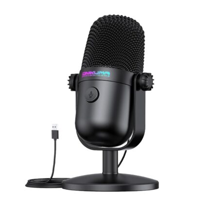 Price: (as of – Details) Gaming Microphone with Noise Cancellation & Mute Button, USB Condenser Mic for Streaming/Recording, Ultra-Compact Design,