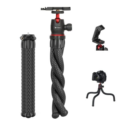 Tygot T-111 Camera Tripod, Mini Flexible Tripod Stand with Hidden Phone Holder w Cold Shoe Mount, 1/4” Screw for Magic Arm, Universal for iPhone 14 13 Pro XS Max Samsung Canon Nikon Sony Cameras