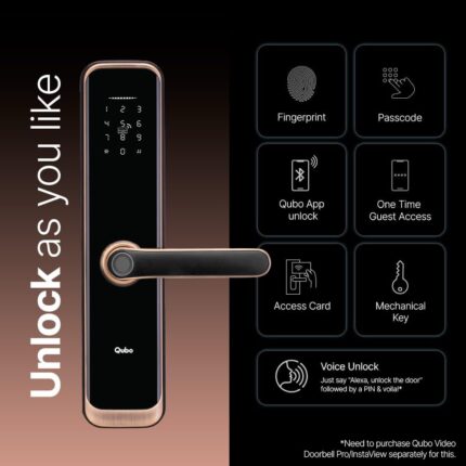 QUBO Smart Door Lock Elite from Hero Group | 7-Way Unlocking | Fingerprint | OTP Remote Unlocking | PIN | RFID Card | Mobile App | Mechanical Key | 1 Year Brand Warranty (Copper)
