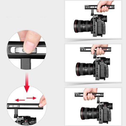 FocusFoto Camera Cage + Top Handle Grip Kit Video Filmmaking Stabilizer Rig Aluminium Alloy with Cold Shoe and 1/4″ 3/8″ Screw Mouting for Panasonic Lumix S1H S1R S1