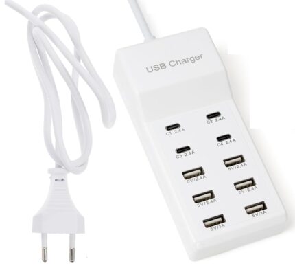 USB Charger USB C Charging Station 10 Ports Multiple USB Charger Station (4 USB C Port) Power Hub Strip Smart Plug USBC Charging Station for Phones Tablet Smartwatch Headphones Speakers