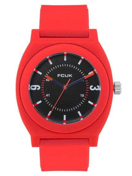 FCUK Analog Black Dial with Red Strap Unisex Watch- FK00015B