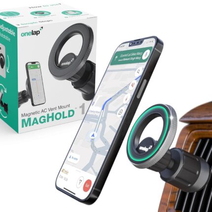 Onelap MagHold™ 1 (with 2 Magsafe Phone Sticky Rings) – Universal Magnetic Car Phone Holder | AC Vents | Android or iOS Devices | 360 Degree Rotation | Strong Magnetic Grip