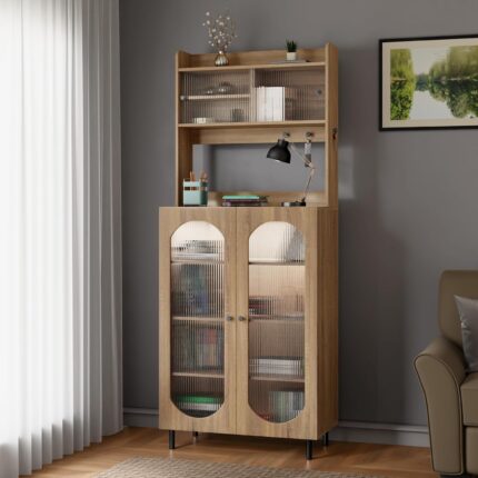 Rocco Stellar Bookshelf with Upper Storage & Auto LED Lights (Oak, Tall Size)