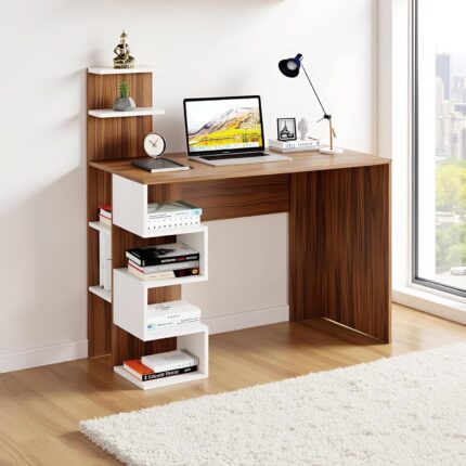 FURNEASER Edward Engineered Wood Study Table, Computer, Laptop, WFH Office Desk, Gaming Table with Storage, Large (Exotic Teak & White)