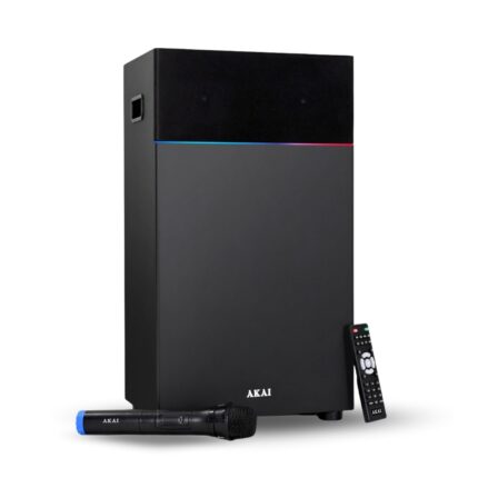AKAI Bluetooth Speaker 60W RMS With Remote – 1 Year Warranty | Dual 3″ Mid Speaker 5.25″ Woofer |Home Theater, Karaoke mic, LED Light, High Bass, EQ Modes | Supports TV, PC & Smartphone (UltraBoom-60)