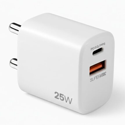 UNIGEN 25W Supervooc Dual Port USB Type C & USB A Wall Charging Adapter | Fast Power Output | Compact & Travel-Friendly Charger for Smartphones, Tablets & USB-Powered Devices (White)