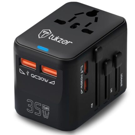 Tukzer 35WGan 5in1 Universal Worldwide Travel Adapter Fast Charging with 2X PD Type-C & 2X QC 3.0 USB-A Ports All in One International Plug Socket Adapter for Android,Tablet,iPhone,Smartphone,Laptop