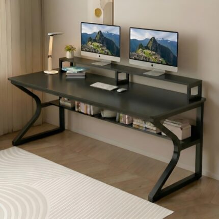 TEKAVO Qri Computer Table for Home Pc | Office Table for Home | Lower Shelf & Moniter Riser, Laptop Table, Worktable, Study Table, Workstation | Black Wood, Metal, (150 Cm x 60 Cm) – DIY
