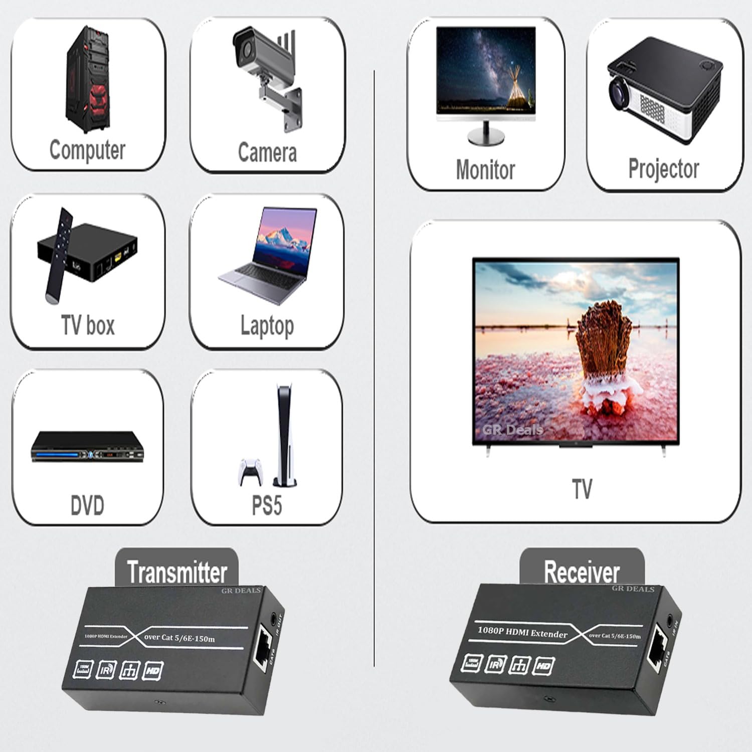 FULL HD 1080P, TRANSMISSION 492 FT :- Supports resolution up to 1080P 60Hz. HDMI extender over cat5e/6 cable distance max up to 492ft (150m), stable, clear and smooth. Compliance with HDMI 1.3 & HDCP 1.2 standard. (We recommend using high performance Cat5e/Cat6 cable to ensure reliable performance).