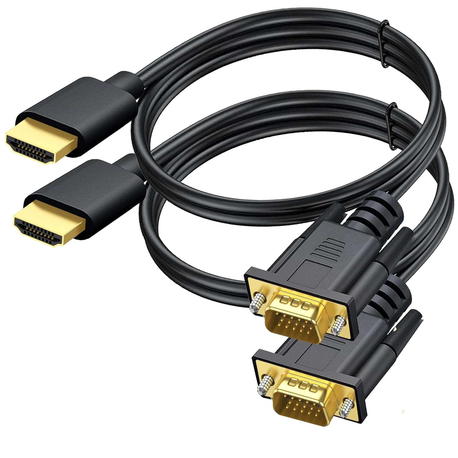 2-Pack HDMI to VGA Cable 6 FT, UV-CABLE Gold-Plated Computer HDMI to VGA Monitor Cable Adapter 6ft Cord for Computer, Desktop, Laptop, PC, Monitor, Projector, HDTV, and More (NOT Bidirectional)-1.8M