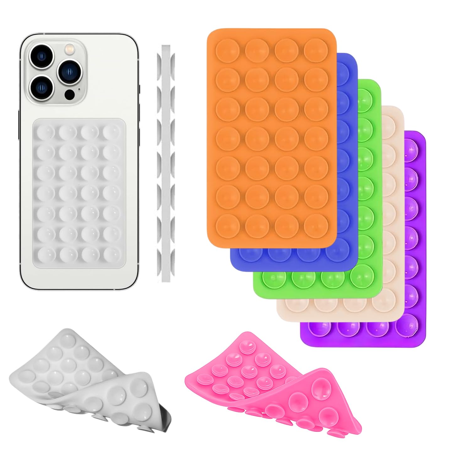 3Pcs Double Sided Phone Suction Pad | Reusable Silicone Phone Suction Case Stand | Anti Slip Strong Grip Sticky Pad for Smartphone & Accessories (Multicolor)