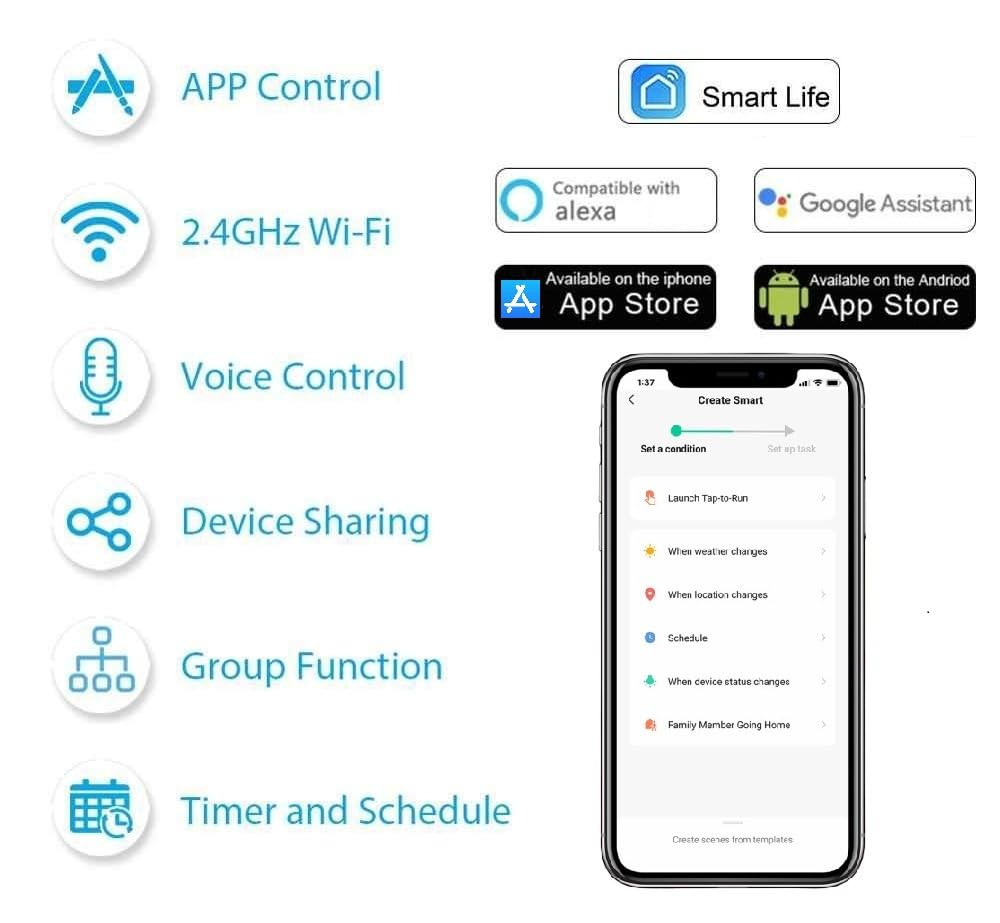 VOICE CONTROL: Teqooz WiFi Switch is compatible with Alexa, Google Assistant, & Siri. So you can control your devices through voice and enjoy hands-free experience.