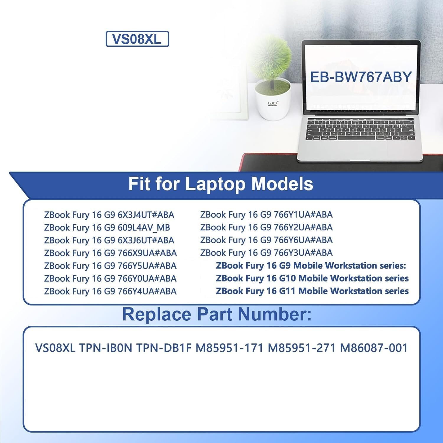 【Compatible Models】VS08XL battery Compatible ①for H/P ZBook Fury 16 G9 Mobile Workstation Series, ②for H/P ZBook Fury 16 G10 Mobile Workstation Series,③for H/P ZBook Fury 16 G11 Mobile Workstation Series