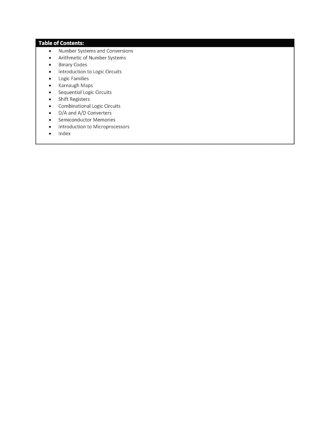 Digital Electronics is an interdisciplinary subject of electronics, electrical, information Technology, computer Science engineering and sciences domain. Digital Electronics has been written as per the syllabus of digital Electronics, digital circuits and logic design of various universities like put, gnu, PU, sleet, DU, pec, NITs and Thapar University. The book provides a comprehensive coverage of the fundi-mental aspects of digital Electronics. It not only explores the theoretical and practical aspects of digital circuitry, but also gives a glimpse of experience and classroom interaction of the authors.