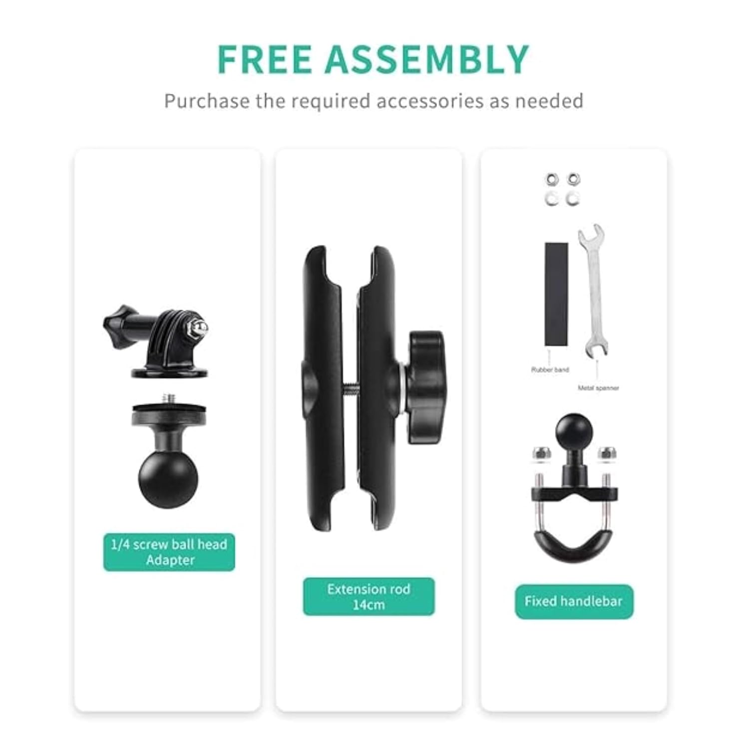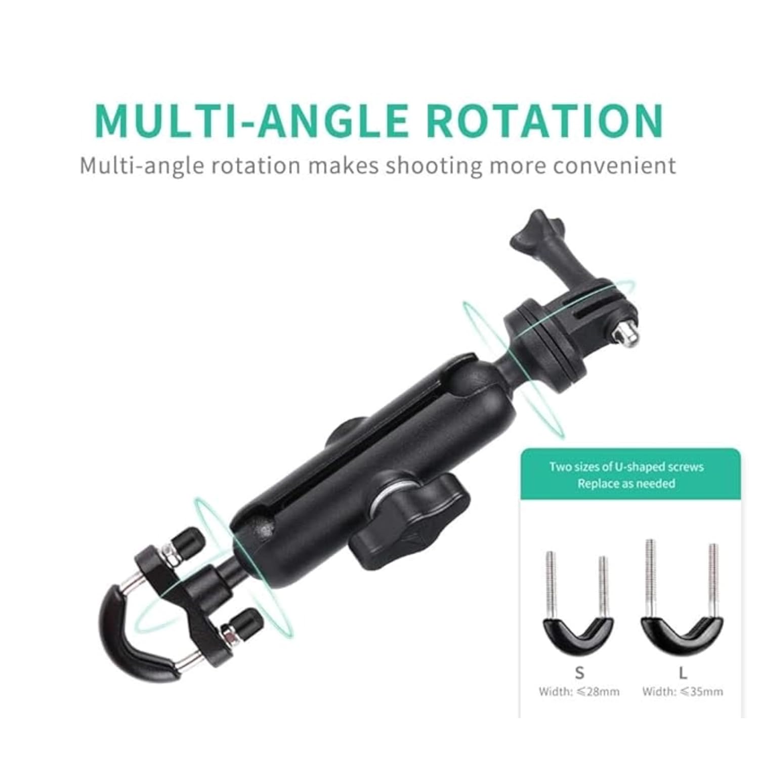 Designed for compatibility with standard connectors, it allows secure attachment to various mounts, including handlebar clamps, suction cups, and adhesive bases. The durable, high-quality construction ensures a firm hold and smooth rotational adjustment, giving you the flexibility to capture every angle.