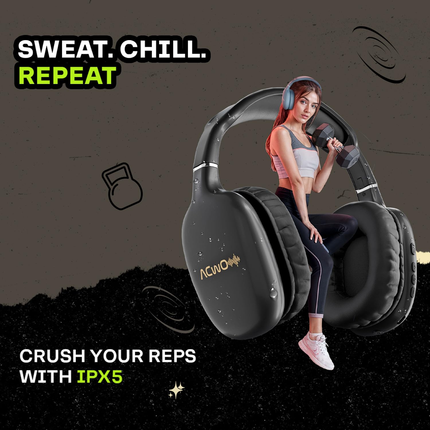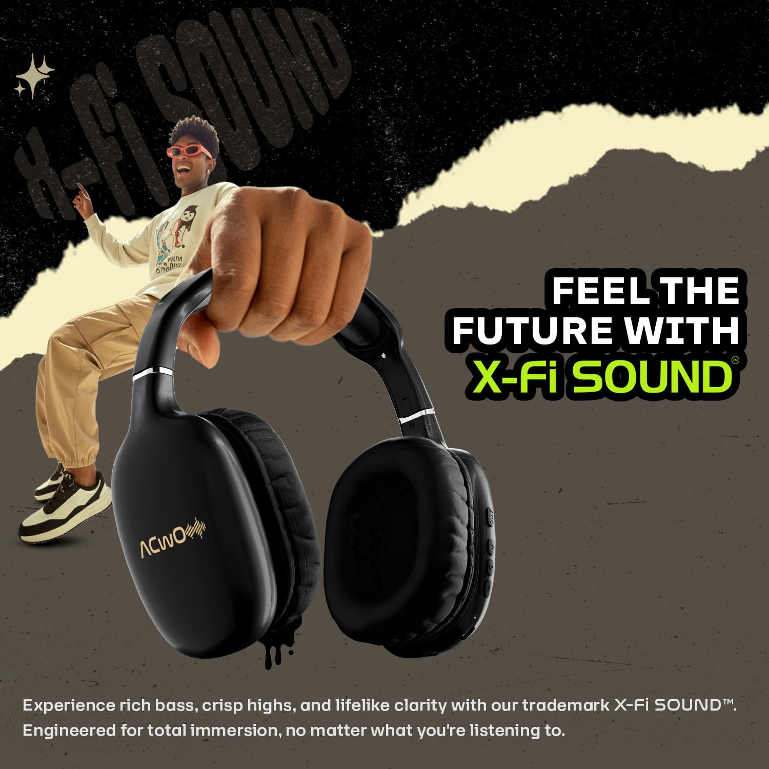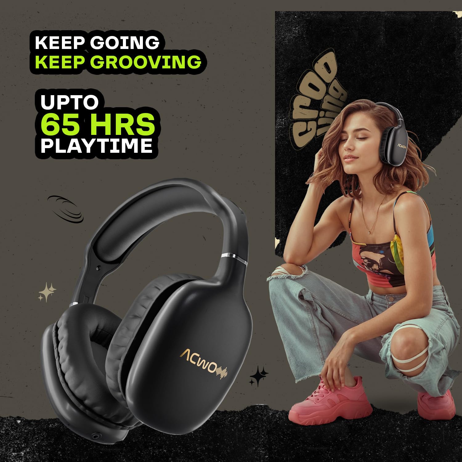 ACwO Twister 515 Wireless Over-Ear Headphones | X-Fidelity Acoustics | 40mm Bass BooMX™ Drivers | ANC 25dB | Dual EQ Modes | 65H Playtime | 45ms Low Latency | AI-ENC Calls | IPX5 – Charcoal Black
