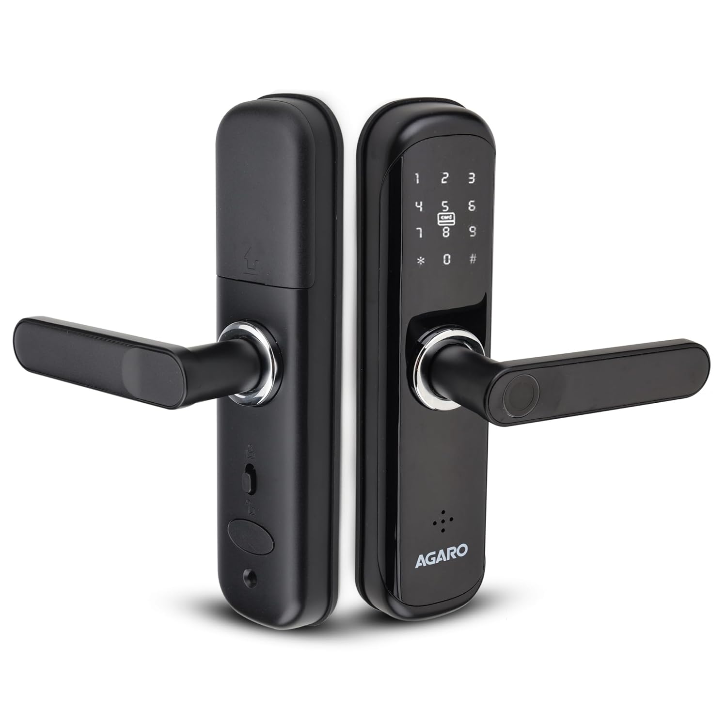 AGARO Grand Smart Door Lock with Handle, Auto Lock, Unlock with Finger Print/RFID Card/PIN Access/App with Bluetooth/Manual Key Access, Digital Door Lock, Anti-Theft Lock, Home Safety, Black