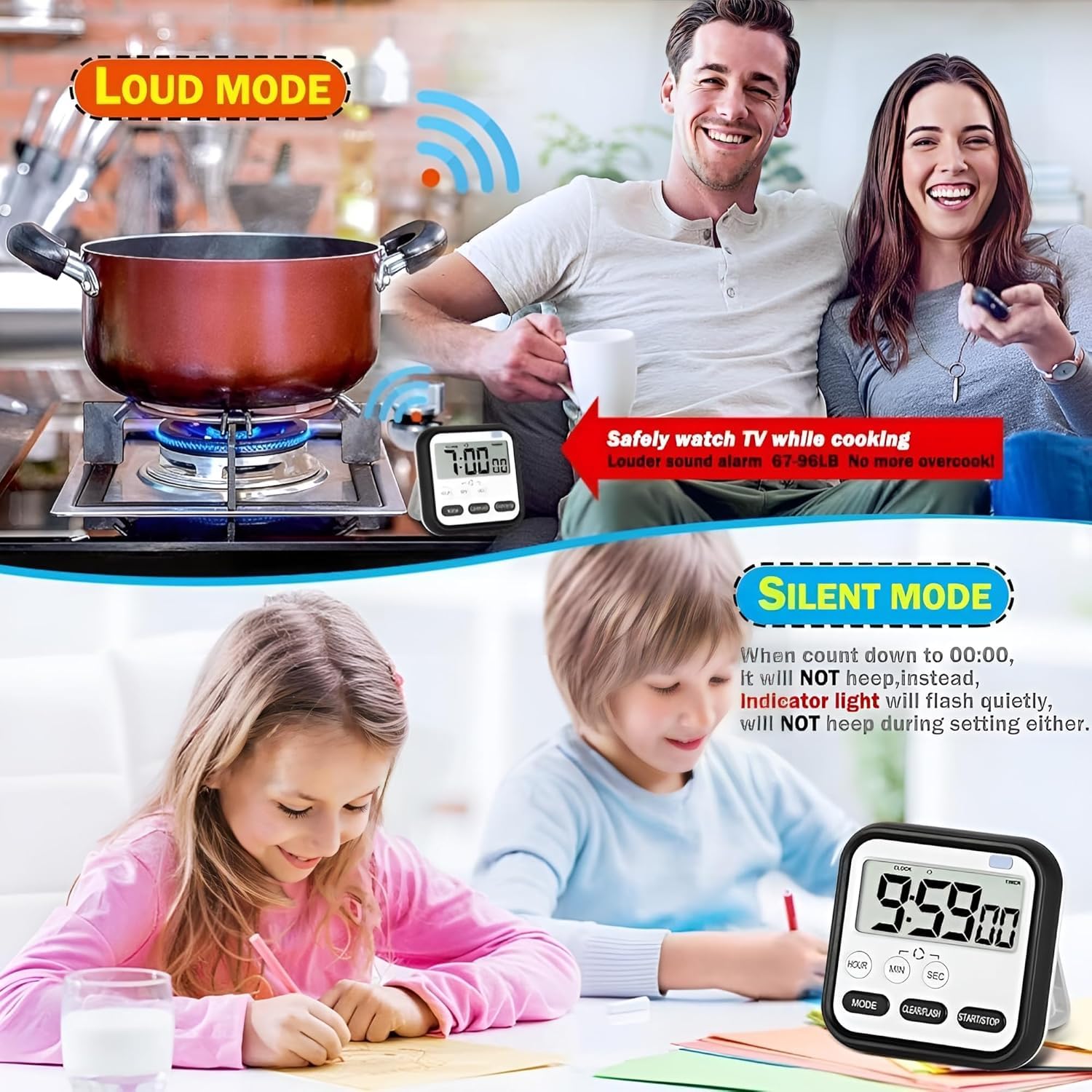 ⏰ Silent Mode & Ring Mode: Available for More Situations, We all dread the situation where our timer rings in the middle of a meeting, class or sound sensitive environments, mute & flash mode is the solution to that problem