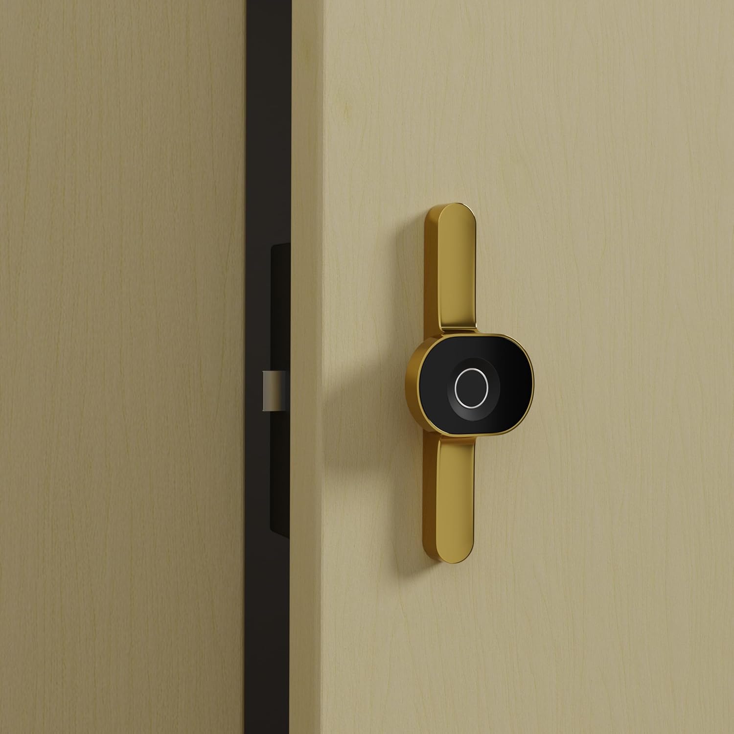 ALCOTT Zinc Fingerprint Smart Biometric Cabinet Lock, Safety Electric Drawer Wardrobe Lock, Digital Furniture Privacy Lock in Gold PVD, Long Round