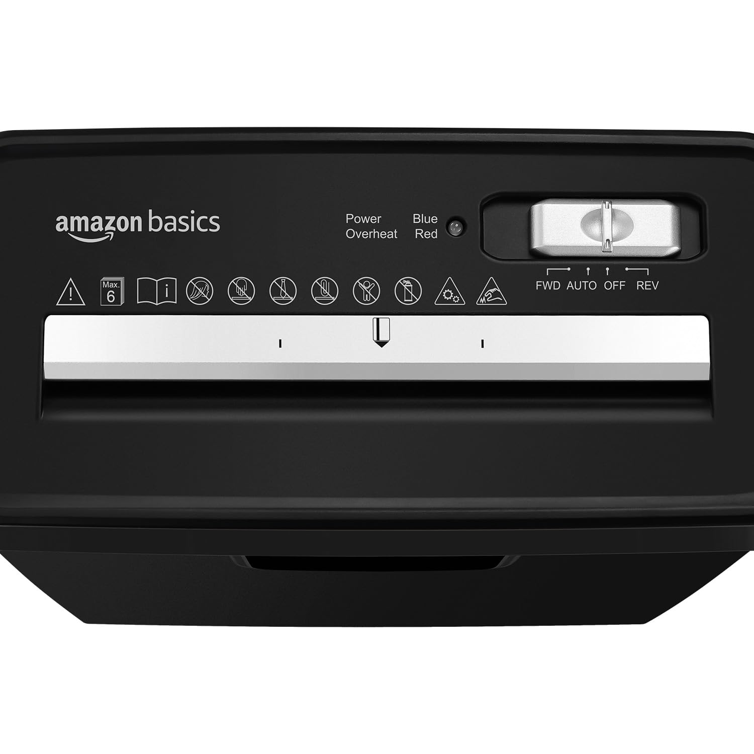 Amazon Basics 6-Sheet Strip Cut Paper & Credit Card Shredder, 10 Liter Waste Basket Capacity|for Office and Home Usage| 1 Year Brand Warranty