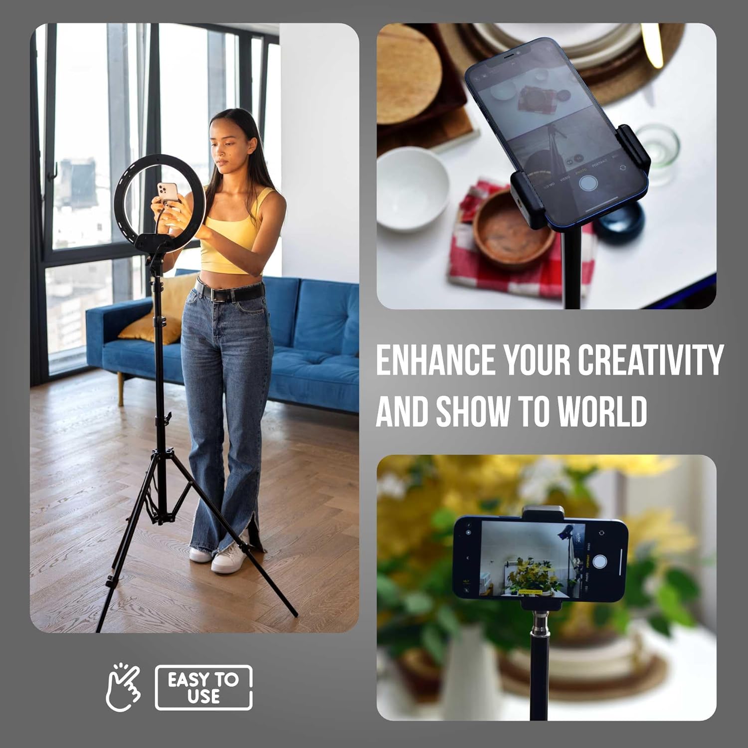 Compatibility: It is compatible with multiple devices including ring lights, light lamps, reflectors, and umbrellas