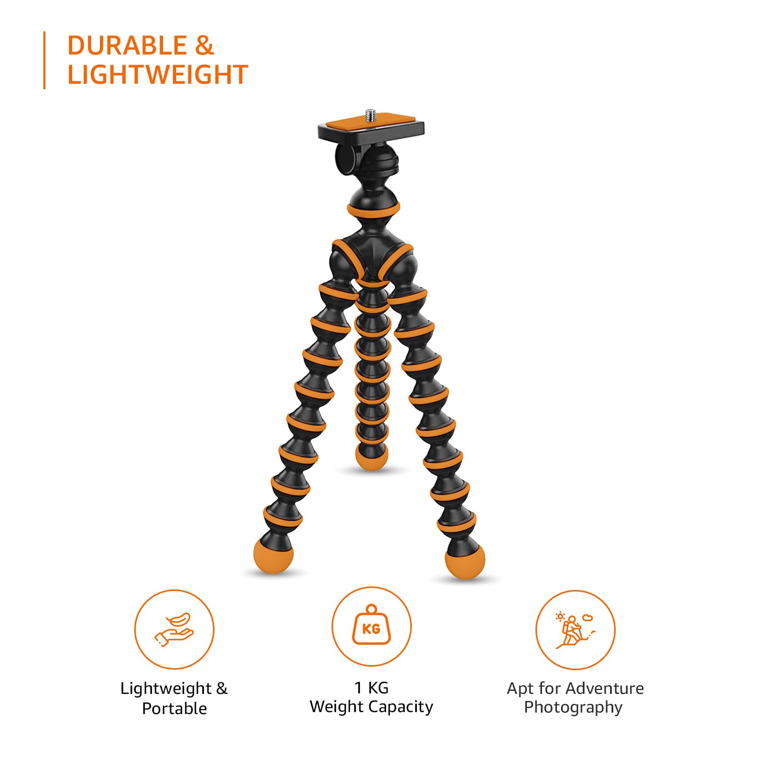 The Amazon Basics tripod stand is the perfect accessory for your filming aspiration. With a flexible camera and smartphone clip, you can use almost all devices to shoot. The stability and durability of the tripod stand enable a smooth experience for vlogging or clicking selfies. Get ready to start capturing your surroundings and show your vision to the world.